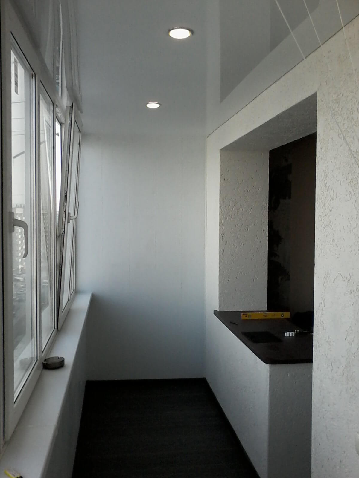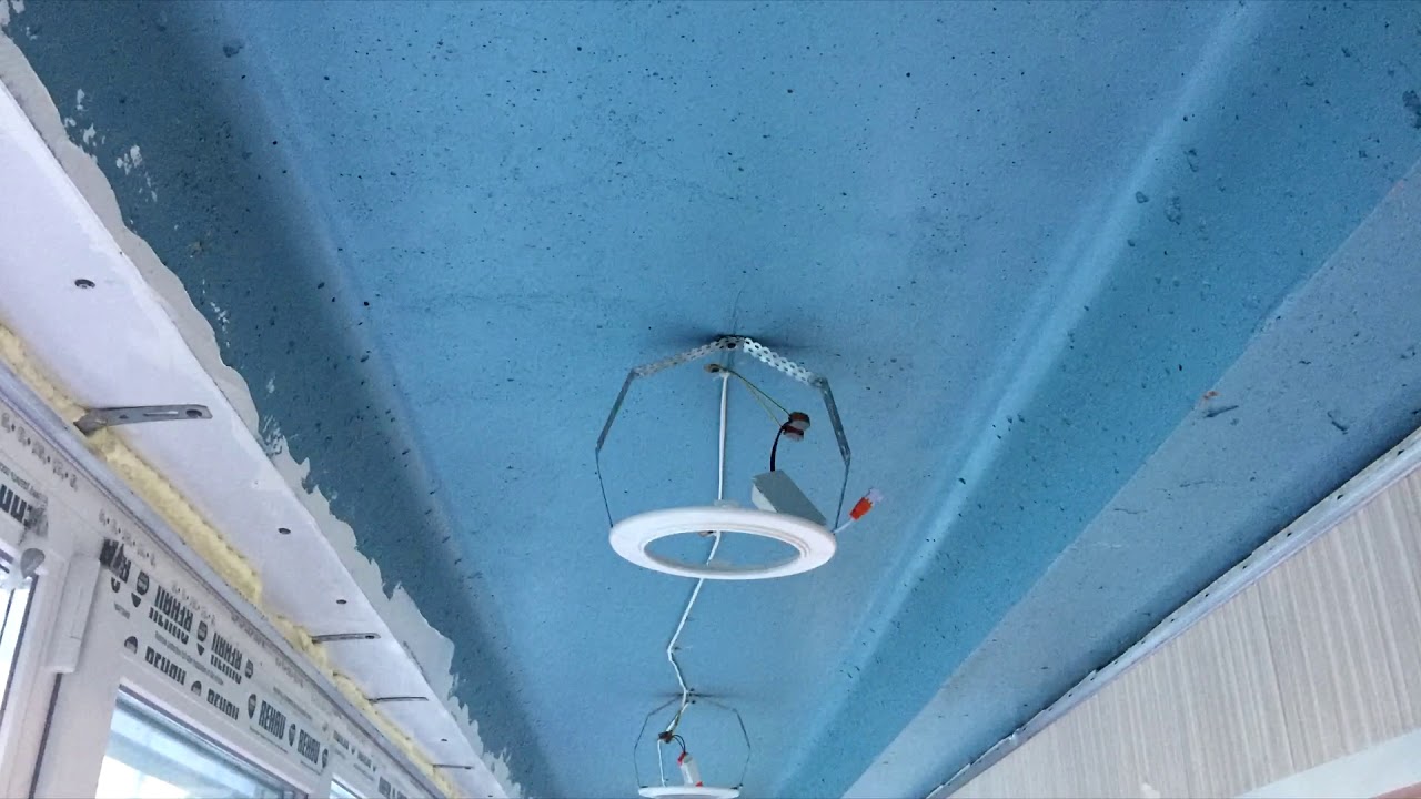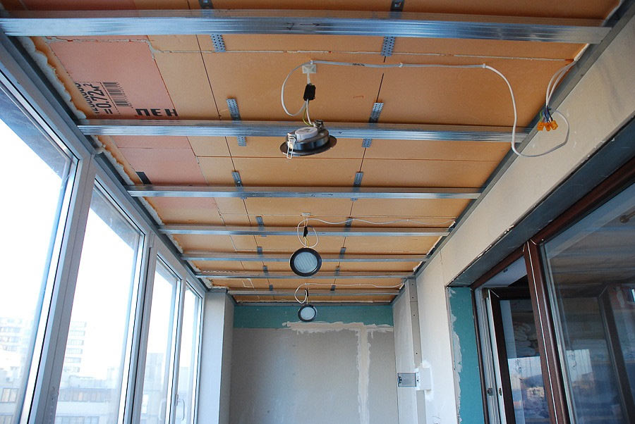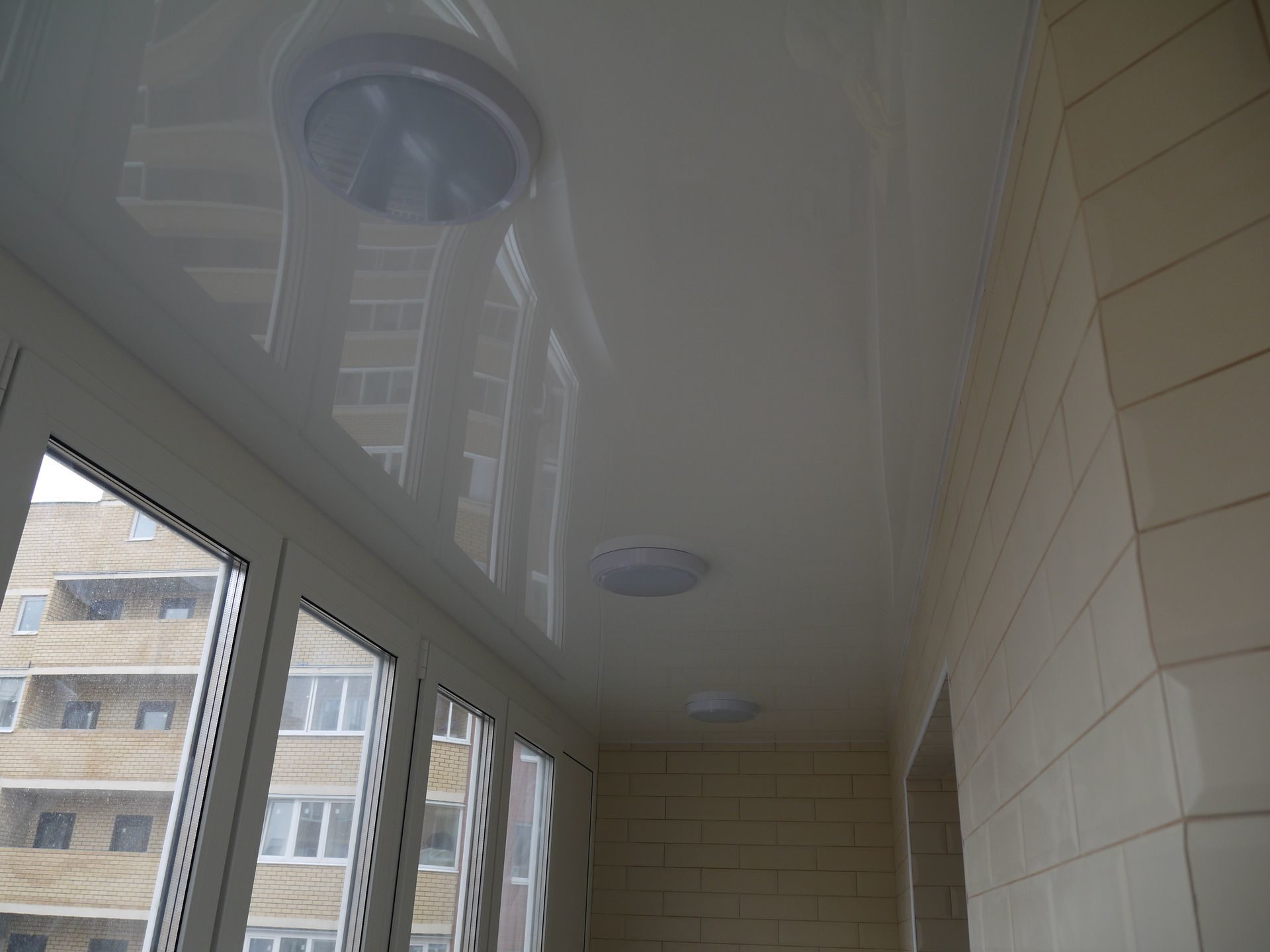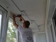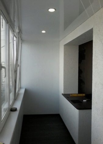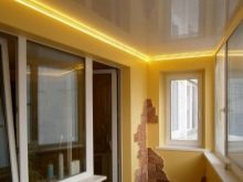 In una situazione in cui il proprietario del balcone o della loggia ha pianificato l'installazione di lampade, deve fissare tutti gli elementi incorporati con il cablaggio disposto in anticipo. Alla fine dell'installazione del soffitto teso, i luoghi corrispondenti sono dotati di anelli di protezione, vengono praticati dei fori e i dispositivi sono collegati alla rete.