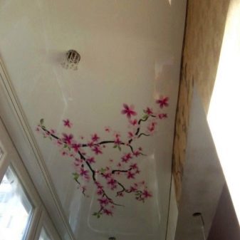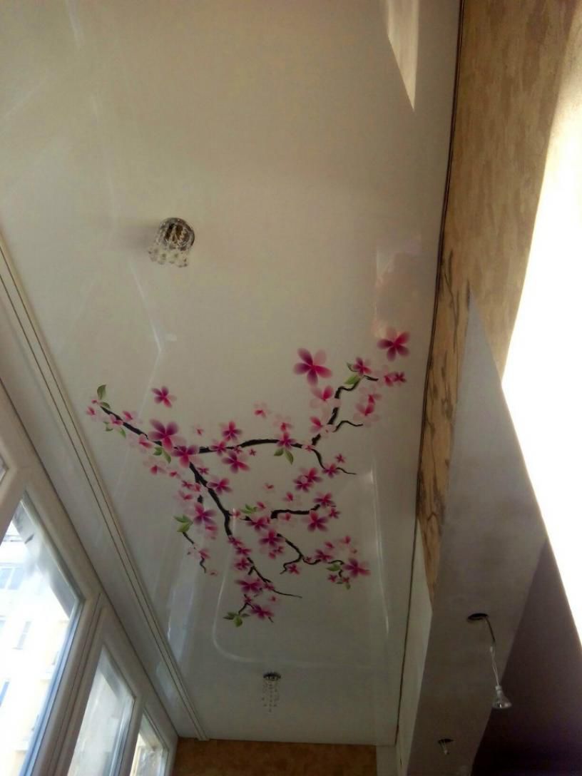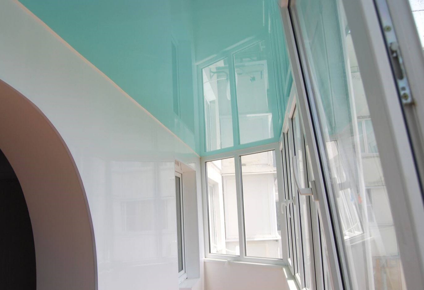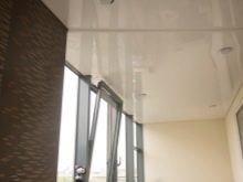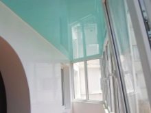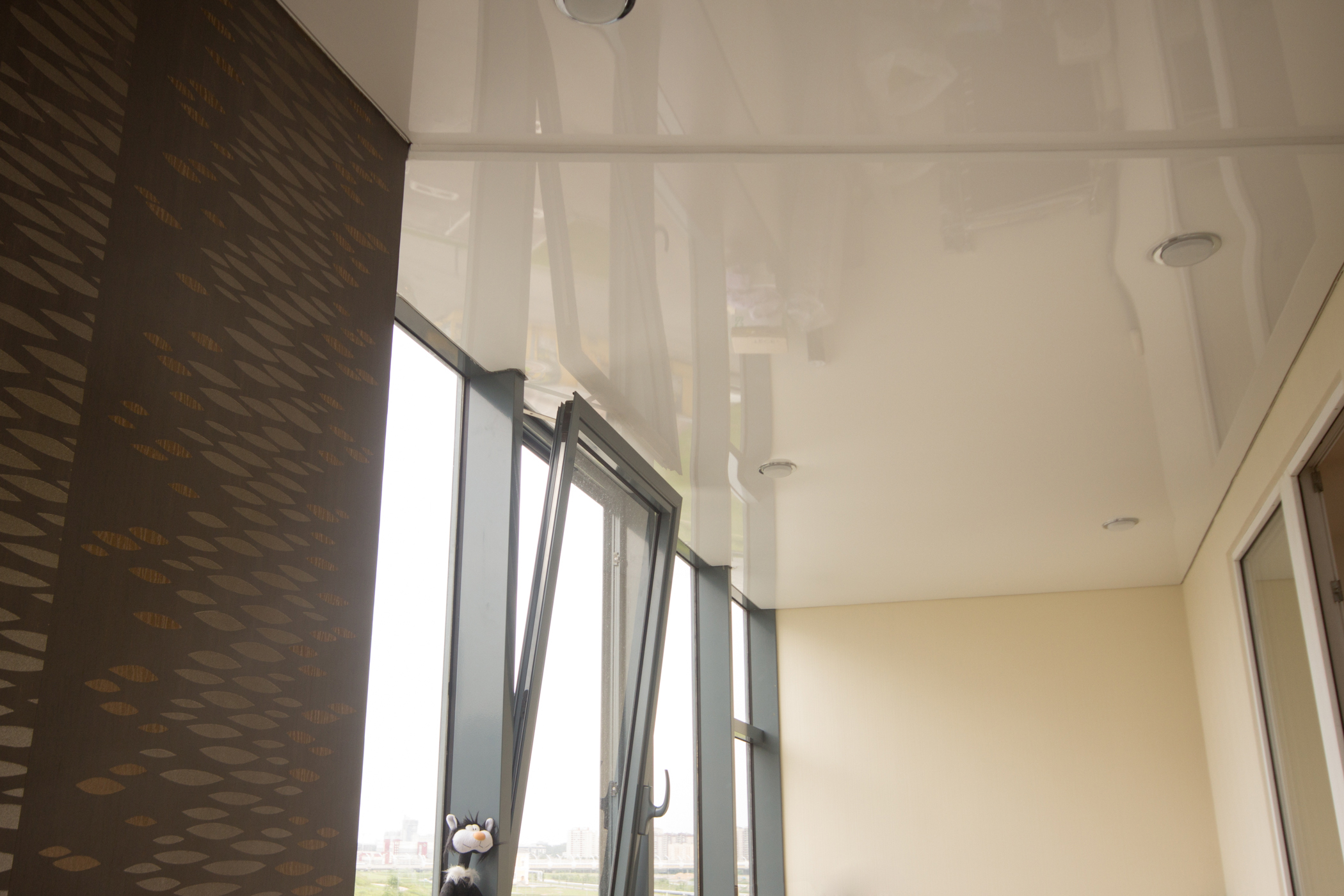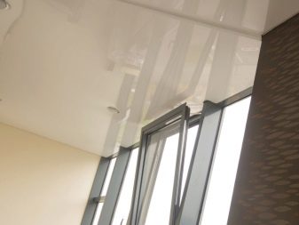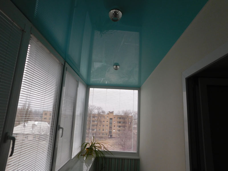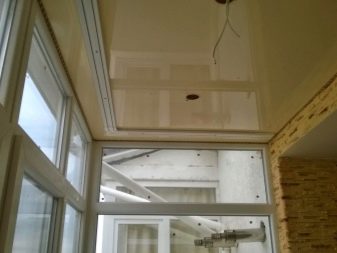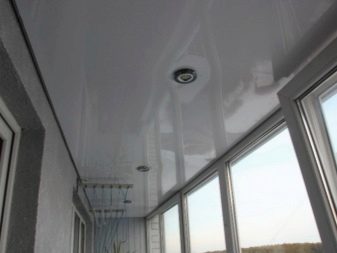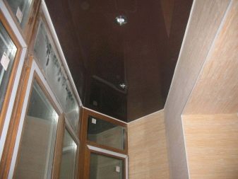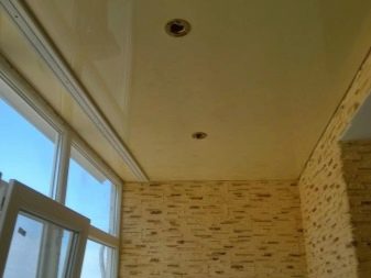 Se l'area del balcone o della loggia è inferiore alla media (fino a 6 metri quadrati), puoi ottenere il suo aumento visivo. Il film in PVC lucido, che ha una lucentezza espressiva e un'eccellente riflettività, può aiutare in questo. Grazie alla superficie specchiata di questo materiale, l'altezza del soffitto può effettivamente essere "innalzata" quasi due volte, il che ha un effetto positivo sulla percezione dell'ambiente nel suo insieme. Nel caso di tele in poliestere, viene fornita una propria soluzione, che prevede la scelta di colori chiari e sfumature.