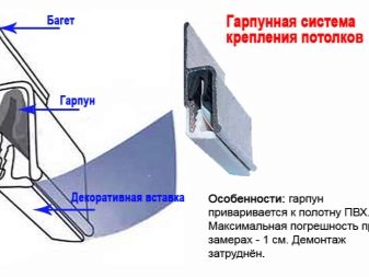 Durante l'installazione vengono utilizzate 3 opzioni principali per il fissaggio del soffitto teso: arpione, clip e vetri. Ognuno di loro ha le sue caratteristiche che meritano una considerazione separata.