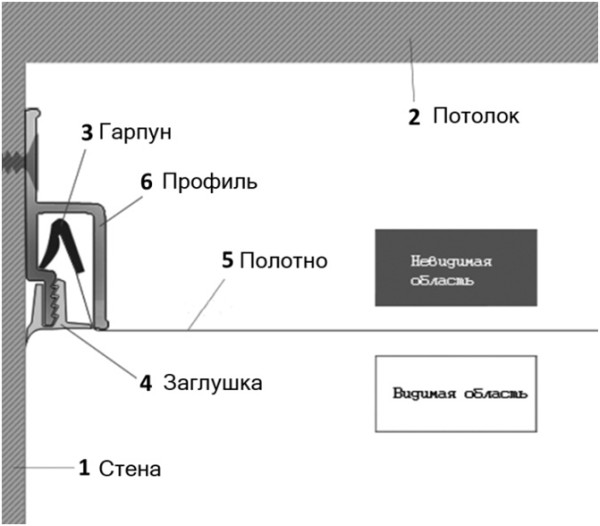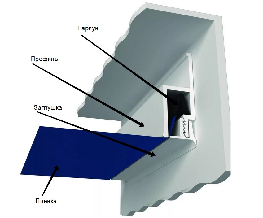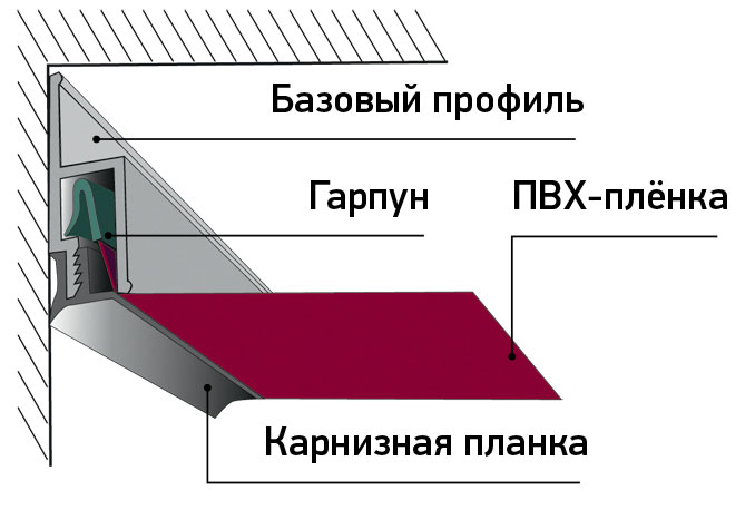 Il metodo è rilevante solo per le tele in tessuto. L'installazione del film in PVC in questo modo è inaffidabile: porta al suo scivolamento a causa della forte tensione.
