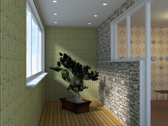 Il design strutturato espande immediatamente visivamente lo spazio. Questa circostanza è particolarmente importante su balconi e logge stretti con una piccola area totale. Attaccando tali prodotti al soffitto, puoi rendere la stanza notevolmente più alta e più spaziosa. Tuttavia, prendersi cura di loro è alquanto complicato. Le superfici goffrate rendono difficile la pulizia.
