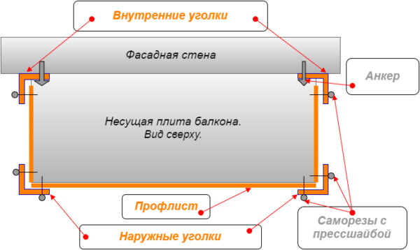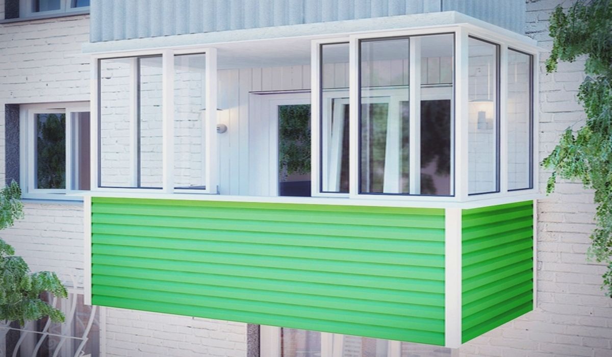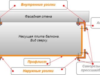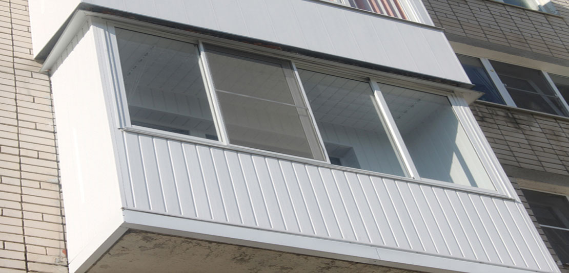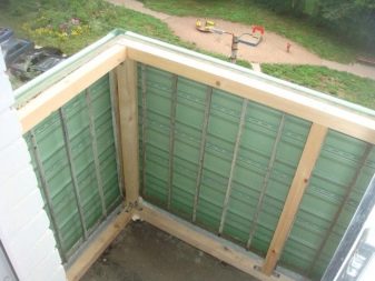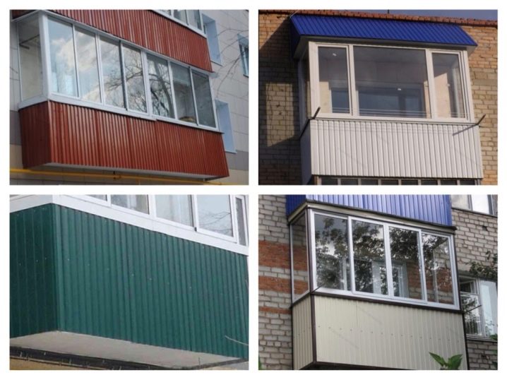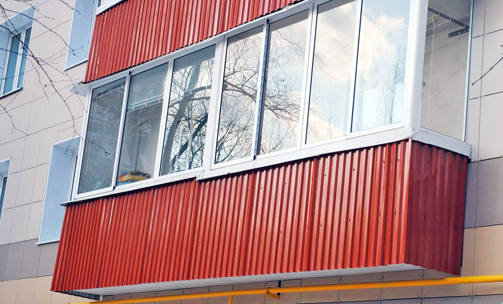 La finitura della parte esterna del balcone o della loggia con cartone ondulato è un'opzione economica che consente di formare la pelle esterna in modo rapido ed efficiente. Il foglio profilato è facile da tagliare, solitamente posizionato verticalmente.