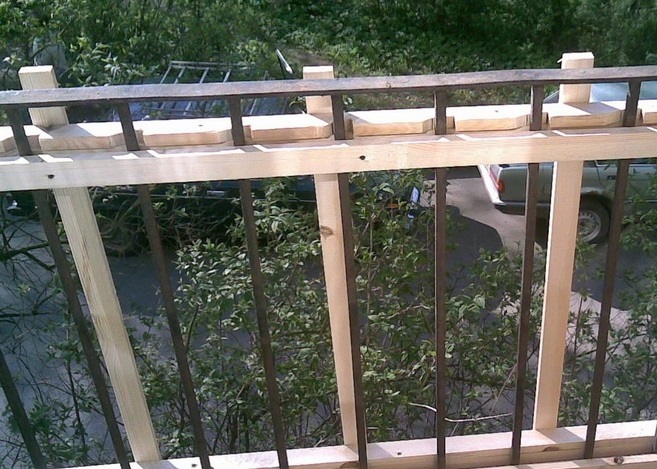 Se ci sono ringhiere metalliche, possono anche essere tagliate sostituendole con una nuova cassa. È montato sugli angoli dall'esterno della lastra di cemento.