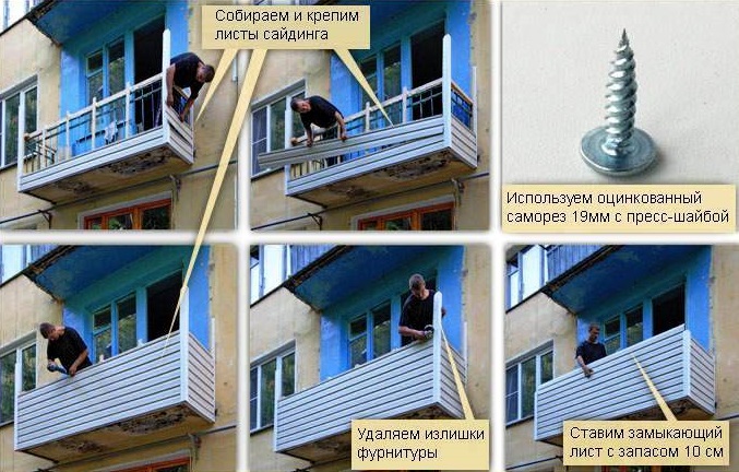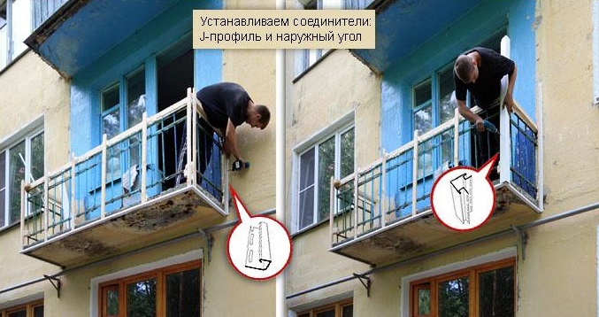 È anche importante prendersi cura di rafforzare il balcone stesso. L'imbracatura è collegata alla superficie della parete con ancoraggi. Si consiglia di preimpregnare i rivestimenti in polimero vinilico per almeno 24 ore nelle stesse condizioni in cui verrà effettuata l'installazione. Ciò eviterà che il rivestimento si deformi in futuro. Quindi vengono posizionati una barra di partenza e gli angoli, fissati con viti autofilettanti zincate.