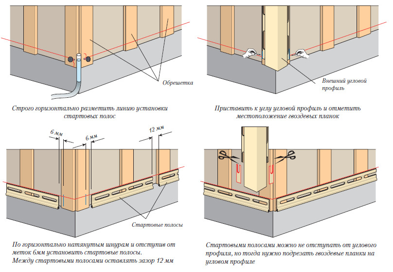 L'installazione del telaio per rivestimenti in vinile viene eseguita a partire dalle superfici laterali. Qui vengono assemblati i telai rettangolari, vengono installati ponticelli aggiuntivi con un gradino non superiore a 50 cm, quindi le corde vengono tirate tra di loro.