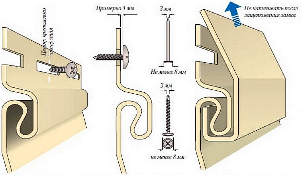 - Fissazione del raccordo. È pretagliato nella misura desiderata. L'installazione inizia dal profilo di partenza utilizzando viti autofilettanti. È importante non avvitarli fino in fondo. Viene sempre lasciato uno spazio di 5 mm per compensare la dilatazione termica dei materiali.