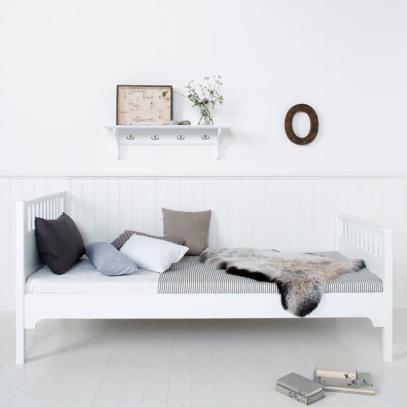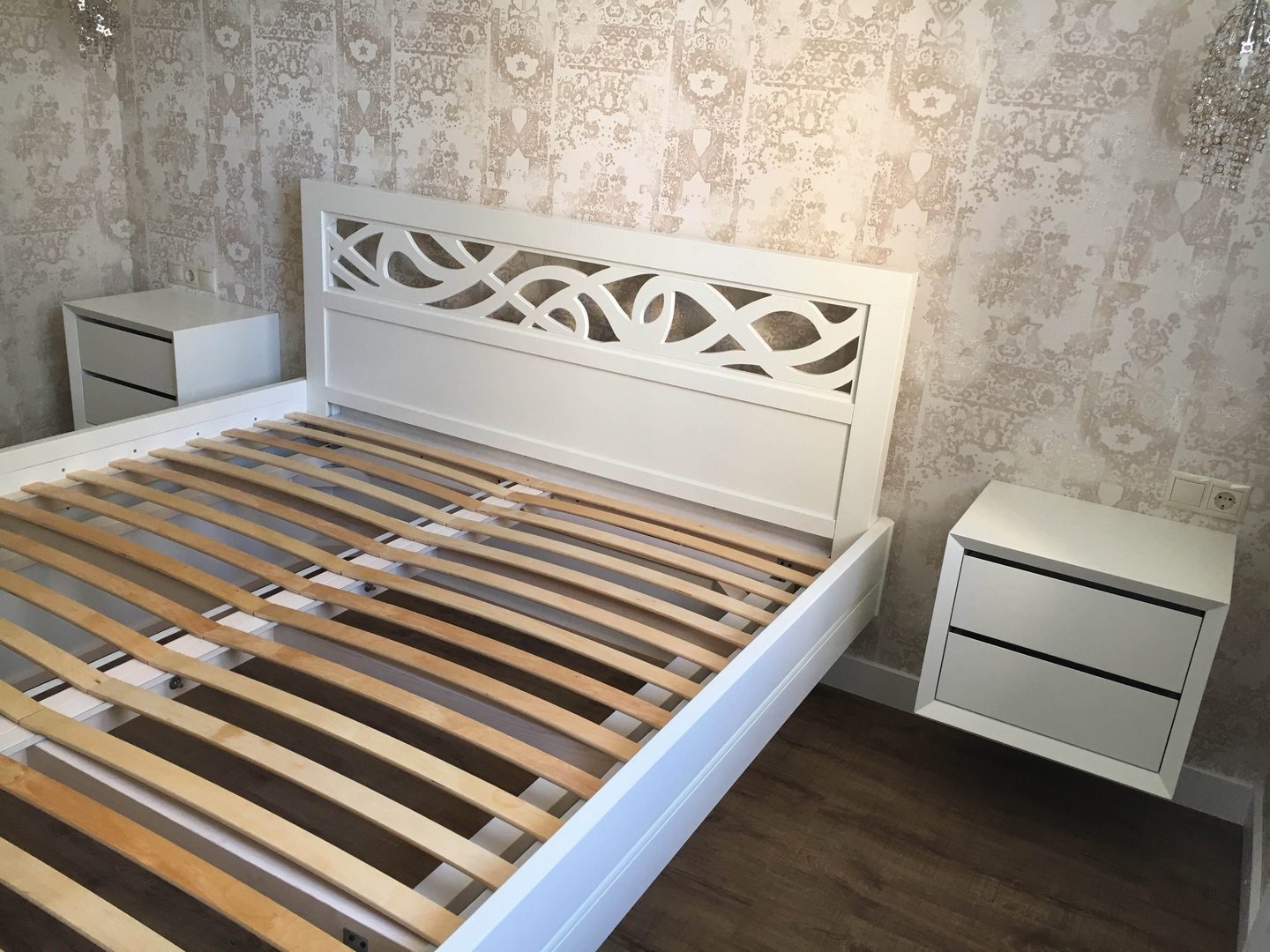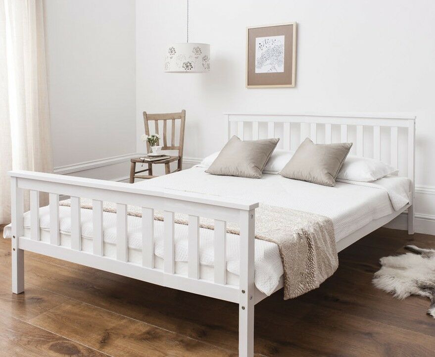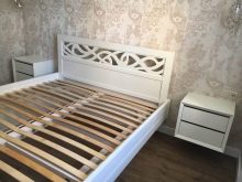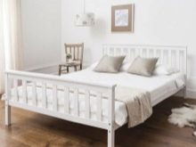 - Letto in legno bianco con testiera alta intagliata o a doghe. Una buona soluzione per la cameretta di un bambino. Qui puoi dare la preferenza a un design a letto singolo, ma nei negozi ci sono anche modelli con letto matrimoniale. Se lo si desidera, i mobili possono essere decorati con un baldacchino, che aggiungerà magia all'interno.