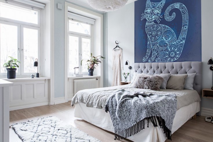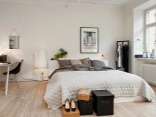 Arredamento... Gli oggetti in una camera da letto scandinava dovrebbero essere semplici da eseguire. Lo stile non ama l'uso eccessivo dell'arredamento, quindi dovrebbe essere scartato.