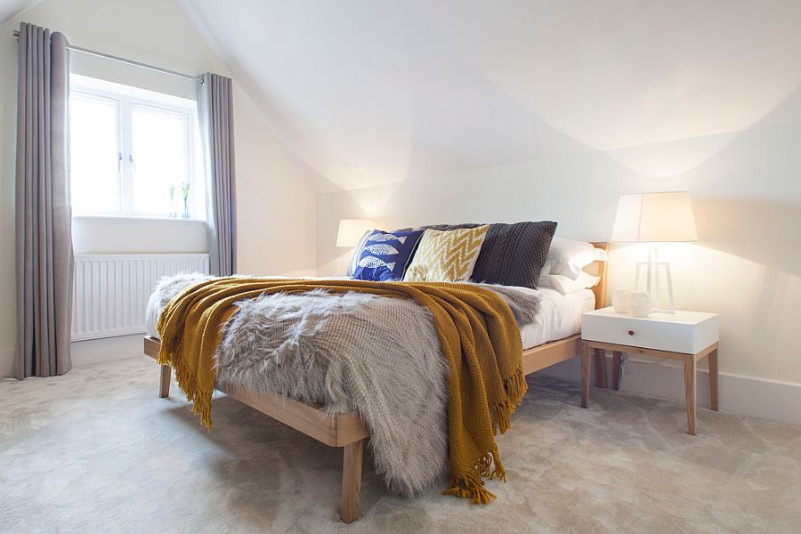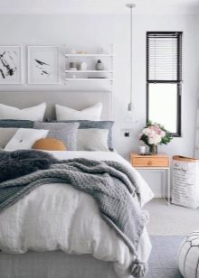 I dettagli accoglienti aiuteranno a mantenere lo stile generale della camera da letto: un copriletto in maglia o cuscini in pelliccia o velluto.