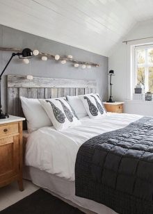 Materiale... La decorazione della camera da letto sarà costituita da mobili realizzati con materiali naturali ed ecologici inerenti allo stile nordico. Molto spesso vengono scelti letti in legno, puoi anche dare la preferenza a strutture in metallo forgiato. Inoltre, dovresti prestare attenzione alle gambe del prodotto. Meglio se sono realizzati in massello di rovere.