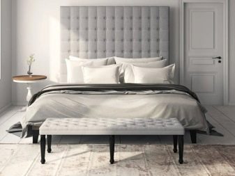 - Letto con testiera morbida... Opzione per chi ama il lusso. La testiera è rivestita in pelle naturale o ecopelle. Inoltre, l'elemento strutturale è decorato con un massetto.