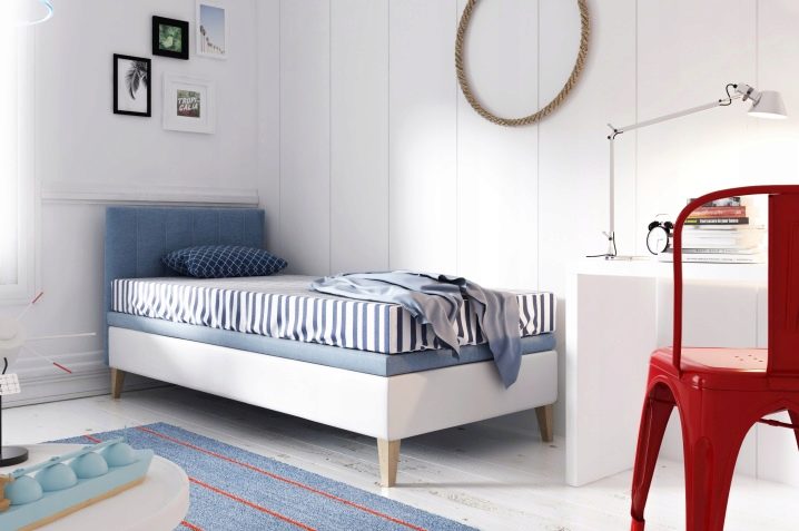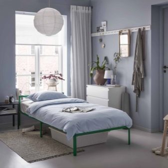 Per una camera da letto stretta, un letto singolo o un divano letto sarebbe l'opzione migliore. Uno dei principali indicatori di mobili, indipendentemente dalle sue dimensioni, è l'altezza. La versione nordica prevede l'uso di strutture alte, quindi quando si sceglie un letto, è necessario prestare attenzione alle gambe.