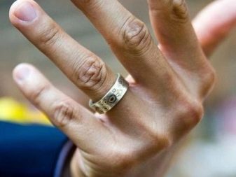 L'anello acquistato dovrebbe adattarsi perfettamente al dito, non scivolare, ma non schiacciare la falange. Uomini con dita paffute e corte si consiglia di dare la preferenza ad anelli larghi senza decorazioni e inserti. Proprietari dita sottili gli stilisti sono invitati a guardare da vicino i prodotti delicati squisiti, ad esempio realizzati con la tessitura traforata.