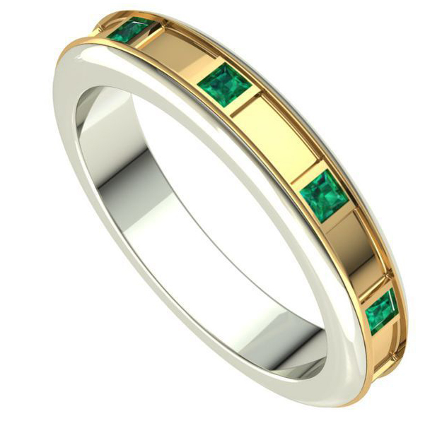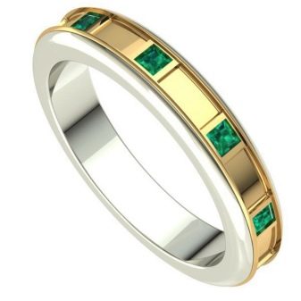 Una pietra preziosa altamente efficace che può variare di colore dall'erba chiaro al verde blu intenso. Quando si decorano le fedi nuziali da uomo, gli smeraldi sono spesso completati da piccoli diamanti, contro i quali le gemme verdi sembrano ancora più luminose.