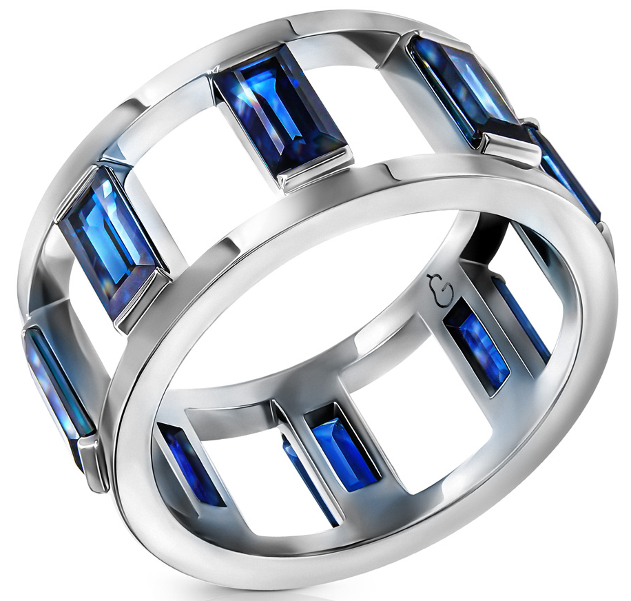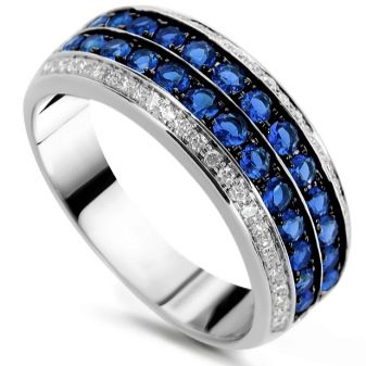 Uno stretto "parente" del rubino, che è un corindone blu penetrante. Questa pietra preziosa viene utilizzata nella produzione di gioielli da uomo alla moda - sia da sola che in combinazione con pietre trasparenti - diamanti, zirconi.