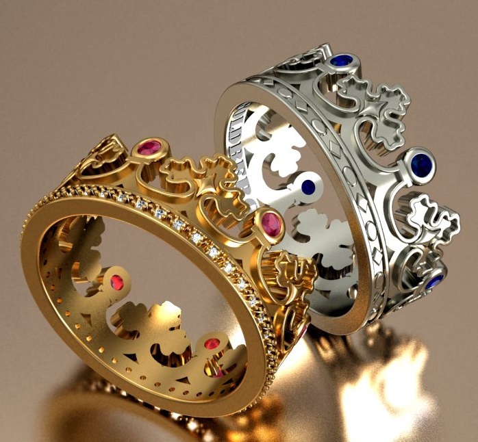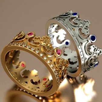 Anelli realizzati a forma di corone... Tali prodotti sono generalmente preferiti da uomini maturi che apprezzano accessori esclusivi e "di status".