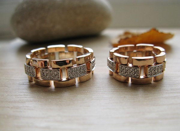 Al culmine della popolarità, ci sono ancora anelli insoliti realizzati sotto forma di catene, serpenti, spirali, nodi marini. Le fedi nuziali per uomo sembrano molto simboliche sotto forma di un segno di infinito, che simboleggia l'amore eterno.