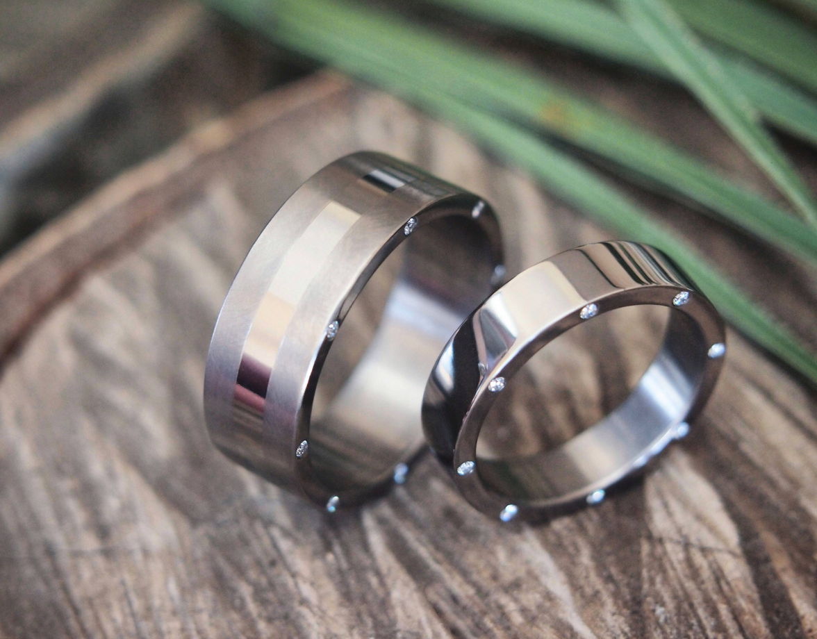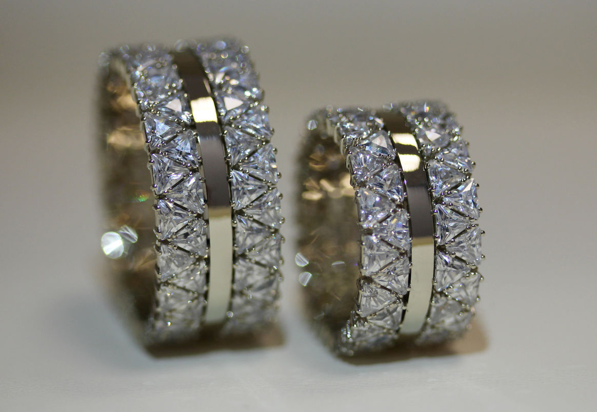 Una gemma classica che viene spesso utilizzata per decorare le fedi nuziali. Di solito, uno o più diamanti di medie dimensioni vengono utilizzati per intarsiare le fedi nuziali maschili. I grandi diamanti solitari sono usati raramente per decorare i gioielli da uomo.
