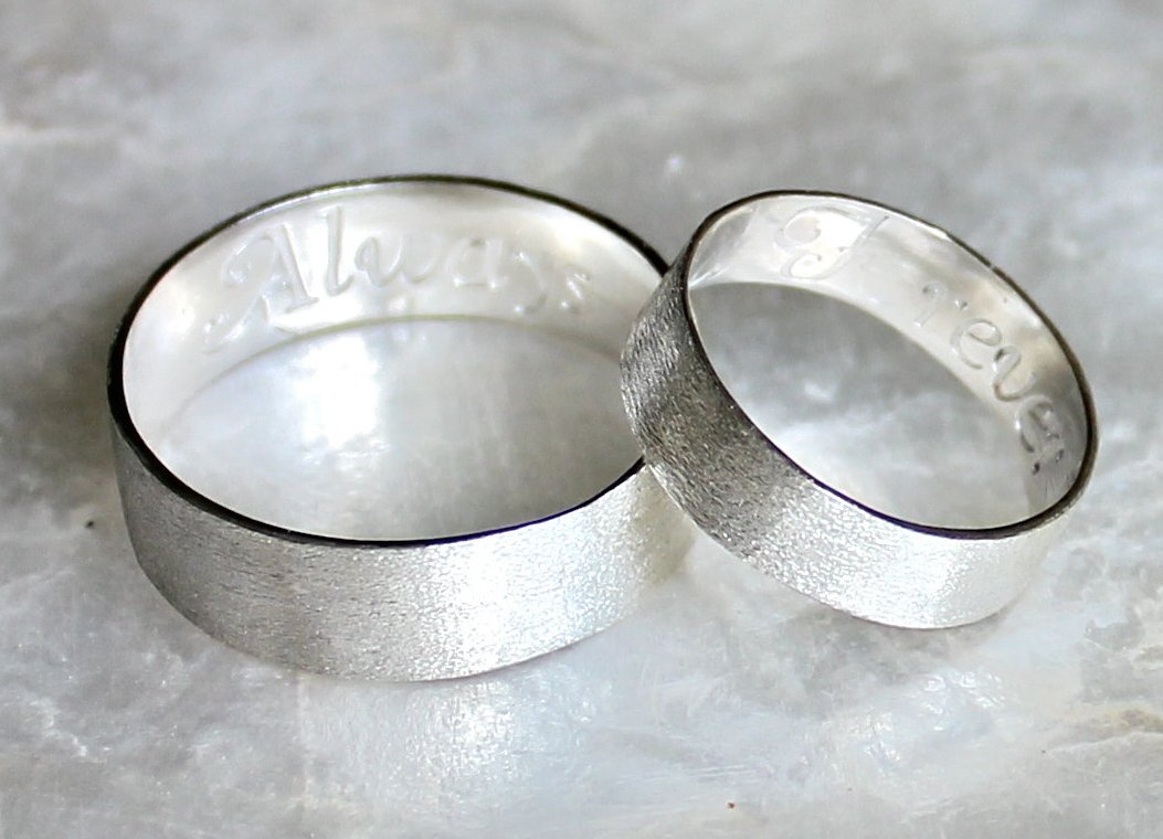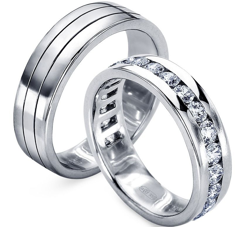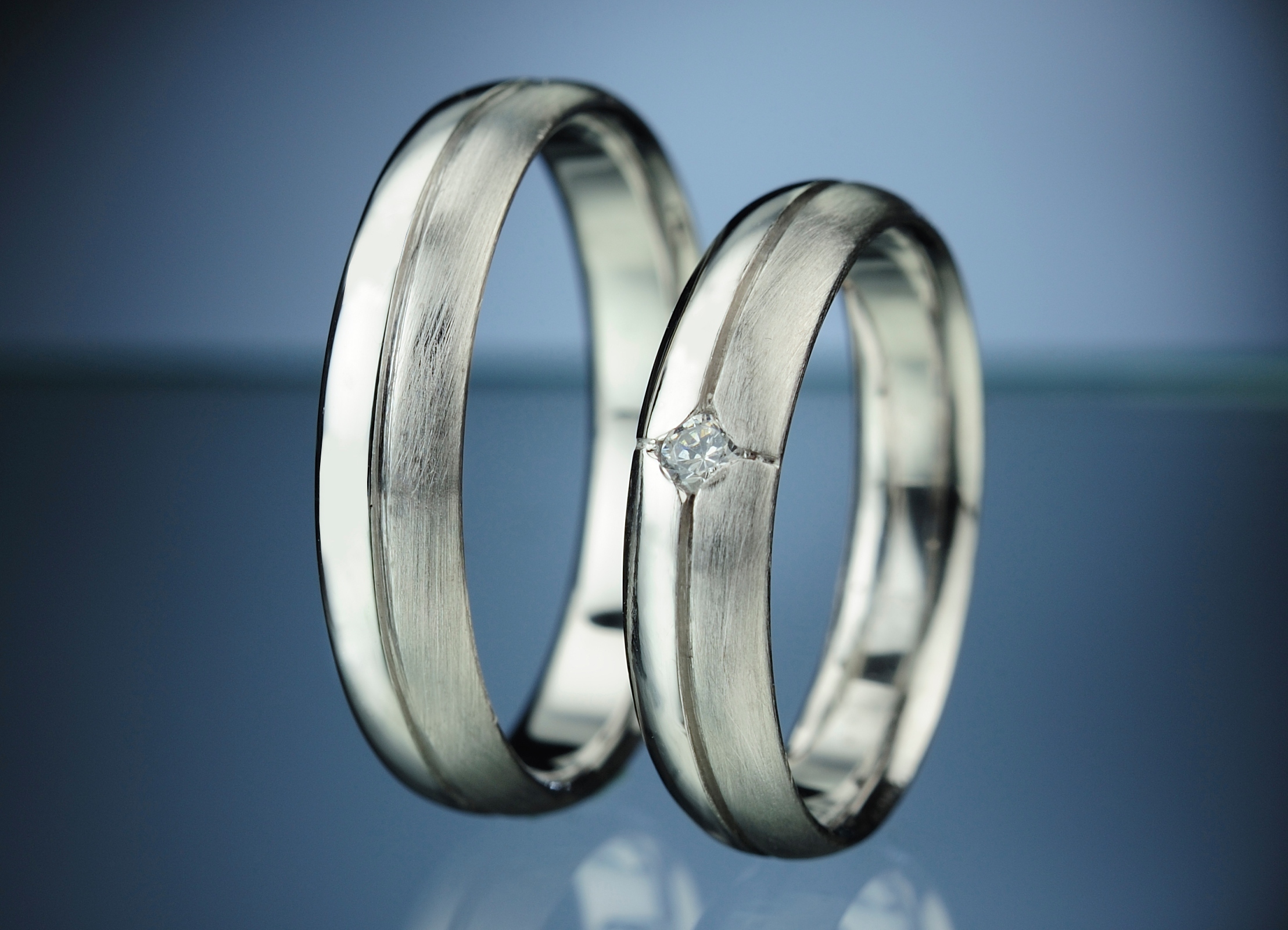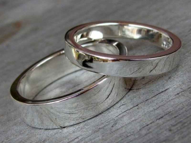 - D'argento - un metallo nobile duttile da cui vengono realizzati gioielli squisiti e poco costosi. In termini di intensità della lucentezza, le fedi nuziali in argento non sono praticamente inferiori ai prodotti in platino.