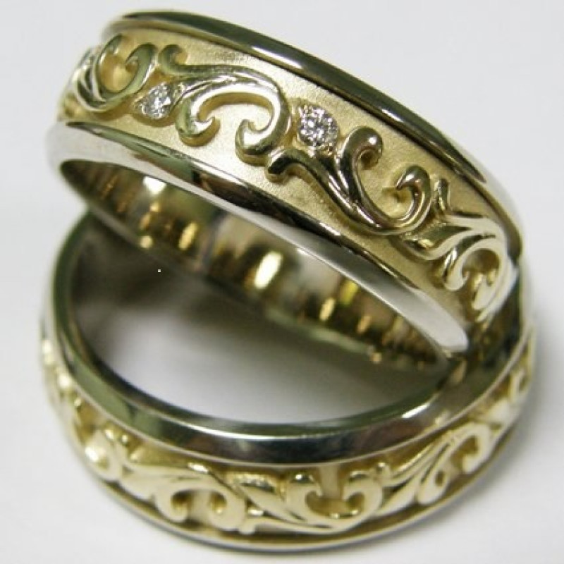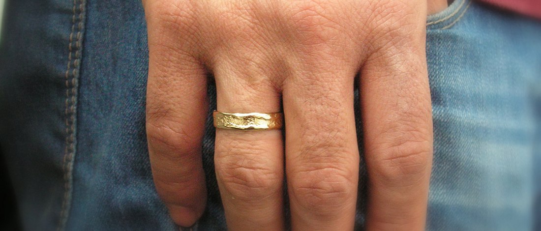 Di solito, le fedi nuziali da uomo con un design insolito sono realizzate su ordinazione secondo uno schizzo dell'autore precedentemente sviluppato.