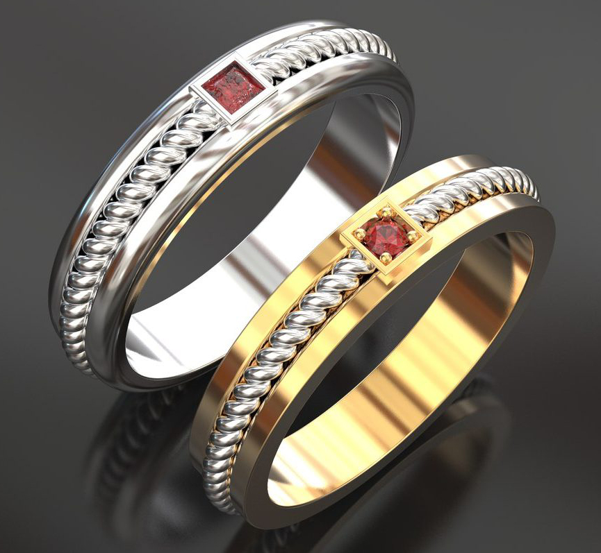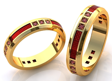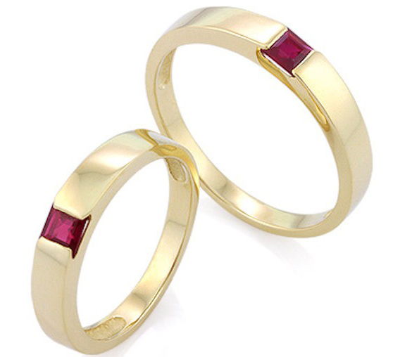 Una pietra preziosa rosso sangue spesso usata per decorare fedi nuziali molto costose, griffate ed esclusive. Si ritiene che un anello nuziale da uomo, decorato con un rubino, possa diventare un talismano per il suo proprietario, proteggendolo dai malvagi.