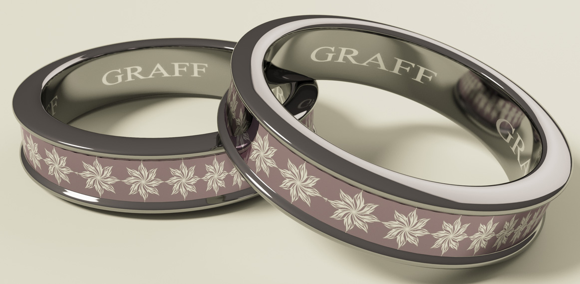 Questo tipo di prodotto non ha alcun decoro. La larghezza di tali anelli consente di realizzare incisioni commemorative sul loro lato esterno o interno sotto forma delle iniziali degli sposi o brevi frasi simboliche dedicate al giorno solenne.