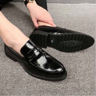 - Il design raffinato vanta chic mocassini laccati... Il vantaggio principale di tali scarpe è che sembrano molto espressive e attirano molta attenzione da parte degli altri. I modelli laccati sono eleganti, sofisticati e spettacolari in combinazione con molti capi del guardaroba maschile. Gli svantaggi di questi mocassini sono la loro tenuta all'aria e la scarsa resistenza alle influenze esterne.