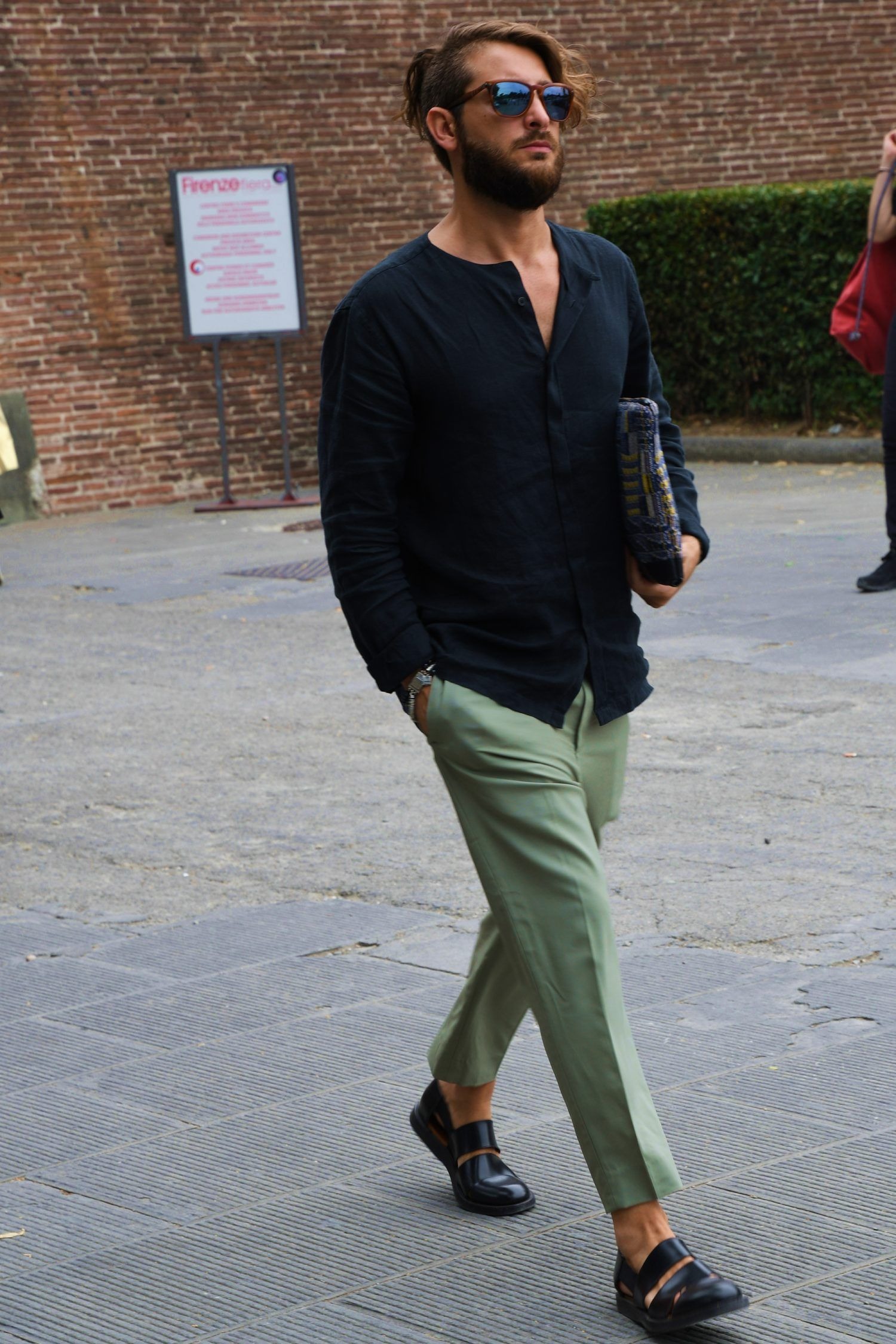 - Versione estiva delle scarpe da uomo - pantofole. Possono essere tranquillamente abbinati sia a pantaloni che a pantaloncini, magliette, pullover, camicie e persino articoli per la casa.