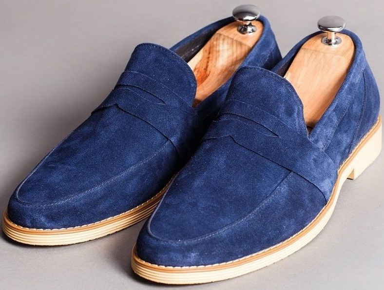 - Blu. Sono considerati versatili e si adattano bene alla maggior parte degli stili. Sembra fantastico se abbinato a vestiti marroni, pantaloni scuri e giacche in tinta unita. Possono essere indossati anche con abiti a quadri. In estate, i mocassini blu si sovrapporranno efficacemente a pantaloncini bianchi, cinturino in tessuto, magliette scure.