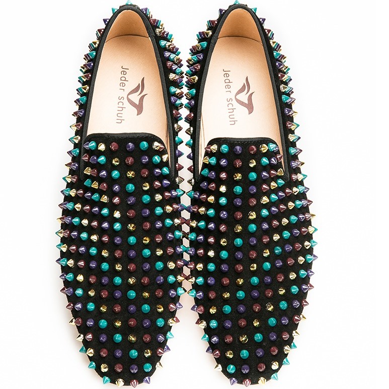 - i mocassini decorati con rivetti multicolori sembrano originali nei fiocchi giovanili;