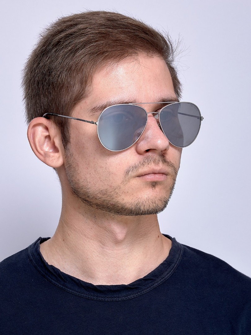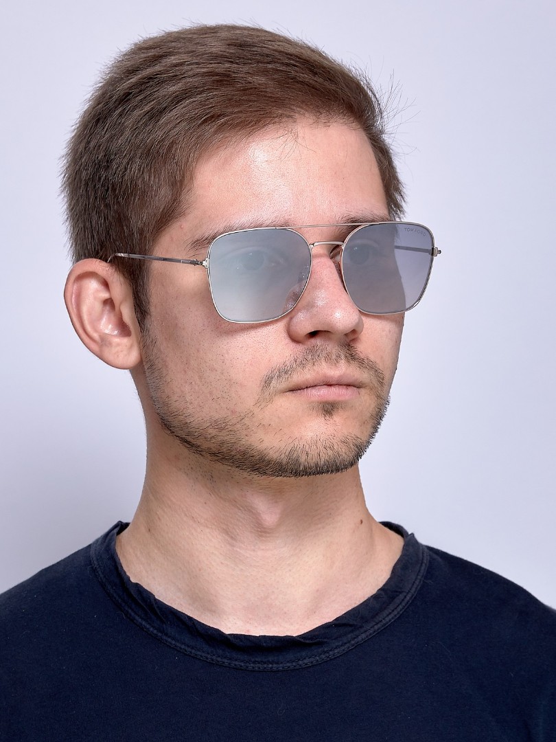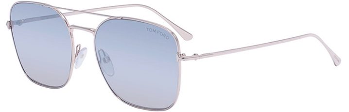 - Tom Ford 680 28C. Modello con telaio a cerchio, di forma quadrata, realizzato in metallo. Il colore è argento. Le lenti sono in policarbonato, i colori sono blu. Nessuna polarizzazione. Fornisce un alto livello di protezione solare.