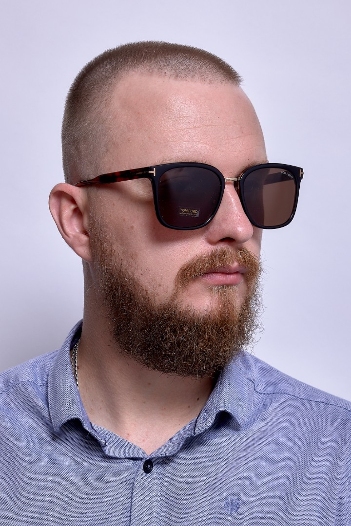 - Tom Ford 638-K 52E. Variante con cornice a cerchio, forma quadrata. Realizzato in plastica. Lenti in policarbonato marrone. Senza polarizzazione, il prodotto è caratterizzato da un'elevata protezione dai raggi UV.