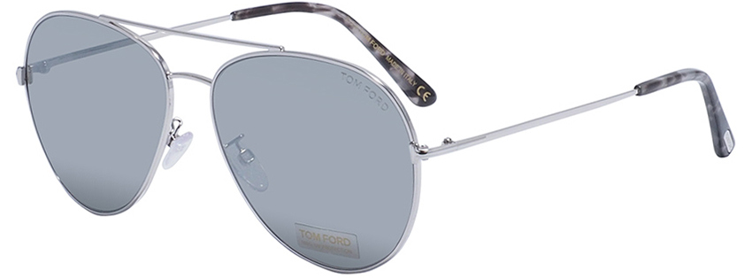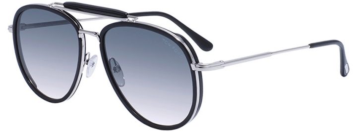 - Tom Ford 636-K 16C. Questa versione ha un bordo color argento, struttura in metallo. Le lenti sono in policarbonato grigio. Nessuna polarizzazione, massima protezione solare.