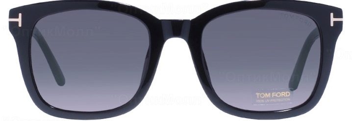 - Tom Ford 638-K 01A. Il modello ha un telaio con bordo quadrato, realizzato in plastica. Il colore della cornice è nero. Le lenti sono in policarbonato grigio-viola. Nessuna polarizzazione. È caratterizzato dalla massima protezione contro i raggi UV.