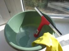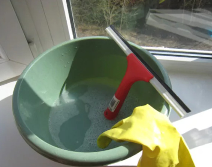Una soluzione saponosa viene utilizzata per pulire i telai in legno e i profili in alluminio. Dopo averlo lavorato, risciacquare rapidamente le superfici e pulire fino a quando il vetro non brilla. Infine, puliscilo con un panno asciutto o un giornale.