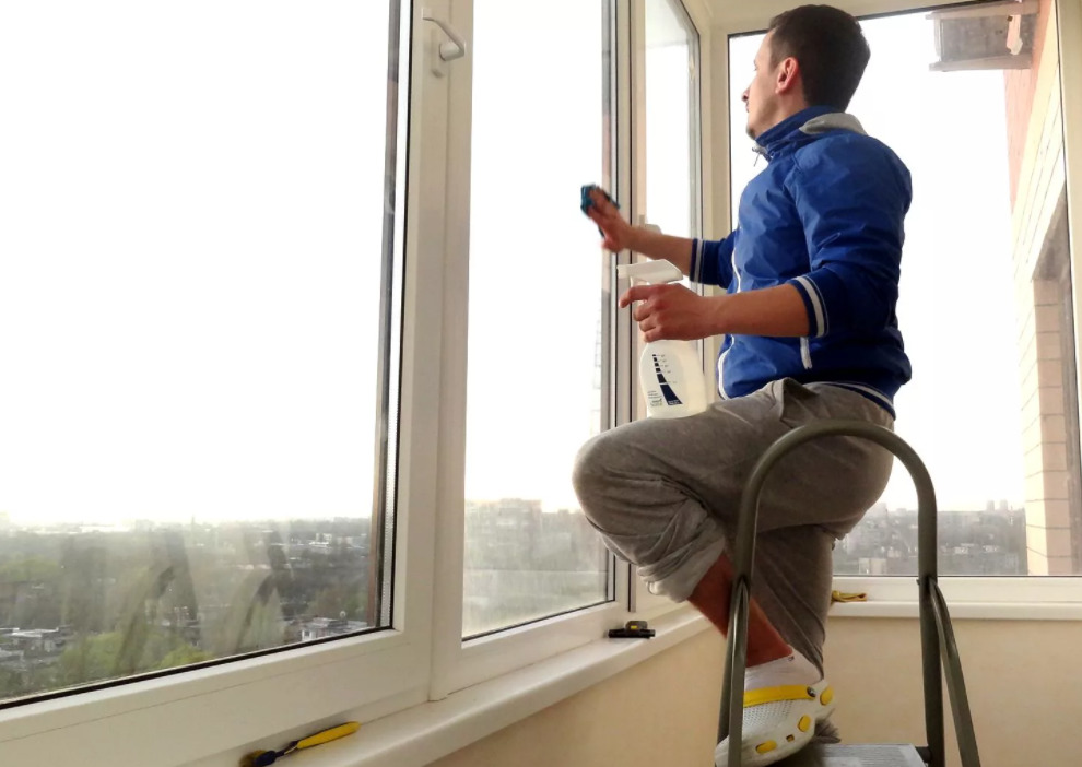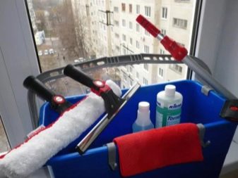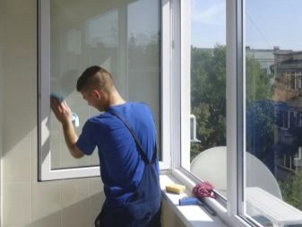 Il lavaggio delle finestre del balcone o delle strutture sulla loggia dall'interno deve essere accurato. Ispezionare attentamente il telaio, se sono presenti graffi sulla superficie del profilo, rimuoverli con lucidanti speciali. Poi guarda le condizioni delle guarnizioni. Lavarli, armati di acqua saponata, quindi lubrificarli con un agente speciale al silicone.