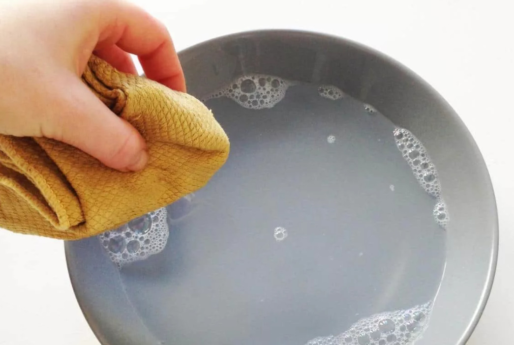 - Affronta lo sporco sul vetro con una normale soluzione di sapone. Versare 2 litri di acqua in un contenitore, versare un po' di sostanza gelatinosa adatta per lavare i piatti. Mescolare accuratamente i componenti fino a formare la schiuma. Viene applicato sulle superfici e lavato via con acqua corrente, quindi asciugato.