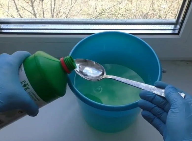 - Per eseguire il processo, prendi 2 contenitori. Secchi, bacinelle, grandi ciotole sono adatti a questi scopi. La soluzione verrà diluita in uno dei contenitori, versare acqua pulita nel secondo, con la quale successivamente sciacquare la sostanza applicata.