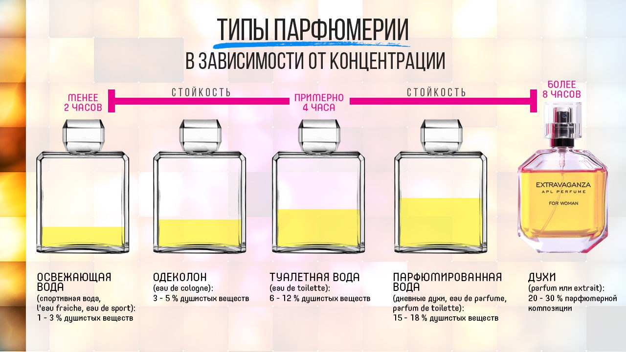 Scegliendo un profumo da uomo, è difficile sapere quanto durerà a lungo. La persistenza di un profumo dipende da quanto è concentrata la composizione aromatica. È consuetudine dividere i prodotti di profumeria in 4 tipologie.