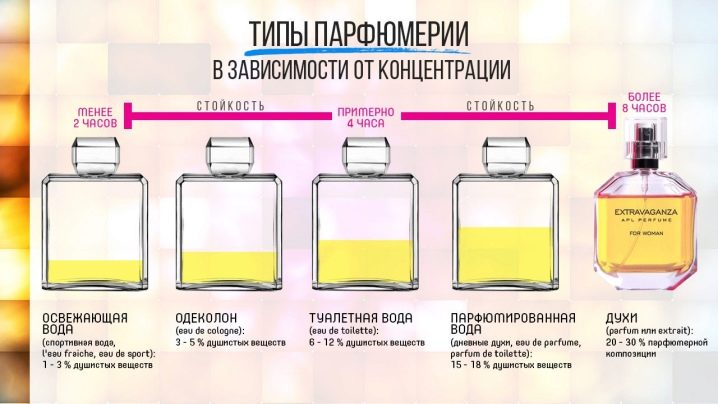 - La prima categoria comprende i profumi. Queste fragranze possono essere definite le più persistenti. Il loro odore è molto pronunciato, piuttosto ricco. L'uso del profumo durante la stagione calda potrebbe essere inappropriato.