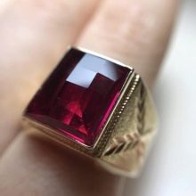 La maggior richiesta è per gli anelli da uomo con rubini in oro e argento... La maggior parte del sesso più forte preferisce le pietre che hanno una configurazione rettangolare o ovale. Gli accessori da uomo si distinguono design laconico e minimalismo nell'arredamento... A Ruby serve solo una cosa: un'inquadratura degna. Include una lunetta in metallo e una cornice in pietra.