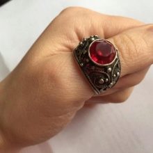 Nei tempi antichi, gli anelli con pietre preziose erano indossati dai nobili, rappresentanti di famiglie nobili. Ferro, bronzo e persino vetro venivano usati per realizzare gioielli. I gioielli spesso si trasformavano in un cimelio di famiglia, venivano tramandati di generazione in generazione. Al corindone cremisi viene attribuito un potere magico, si ritiene che protegga il suo proprietario dalle forze oscure, guarisca i disturbi, accenda la passione, dia energia e aiuti a trovare l'armonia spirituale. C'è un segno che se la pietra nell'anello si è oscurata, il suo proprietario è in pericolo.