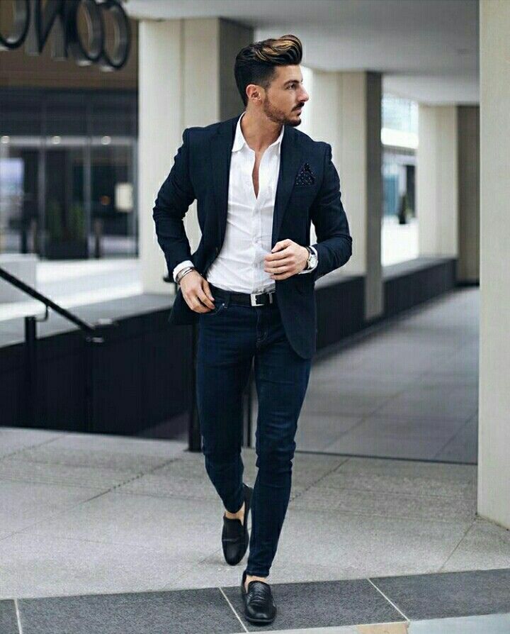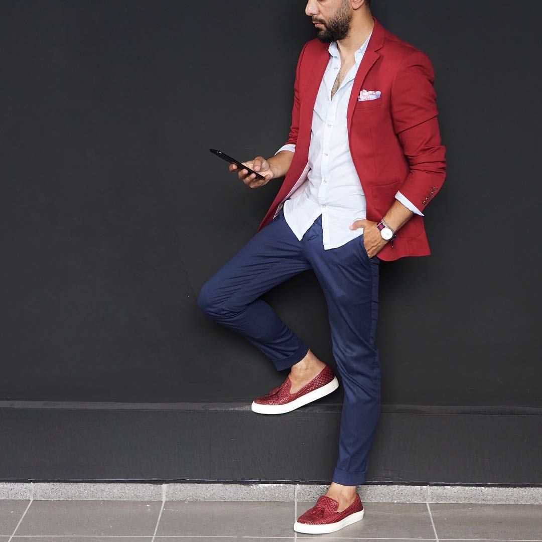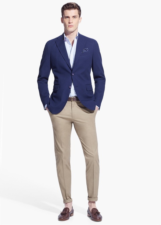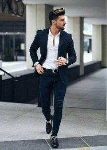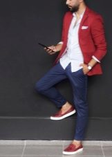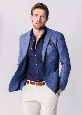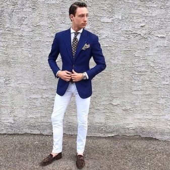 - jeans, pantaloni chino - qualsiasi tonalità, ma non abbinata al colore del blazer;