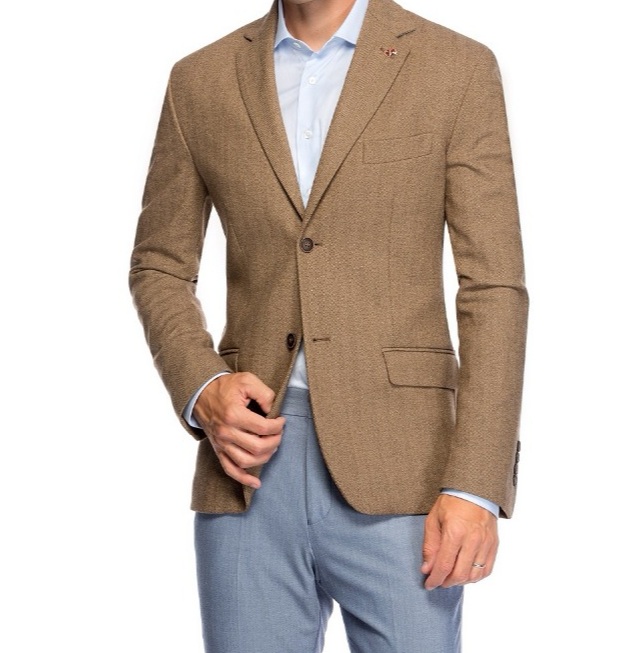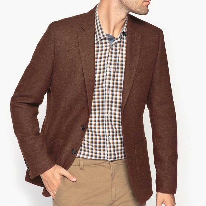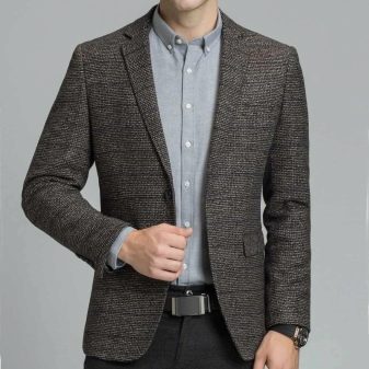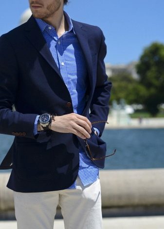 Questo modello sembra più informale di un blazer classico, ma più rigoroso di una giacca sportiva. Oltre ai colori sobri, sono accettabili elementi sotto forma di una grande cella scozzese e un'ampia striscia.