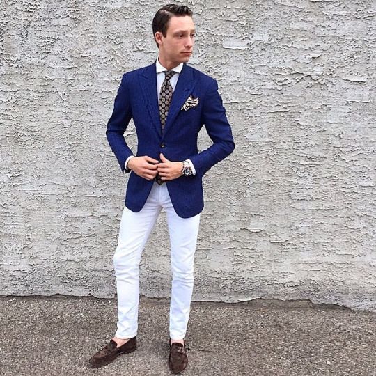 È stato a lungo notato che qualsiasi giacca completa favorevolmente l'immagine, quindi molti uomini preferiscono un blazer a una giacca a vento come capospalla casual per le fresche giornate estive.