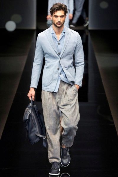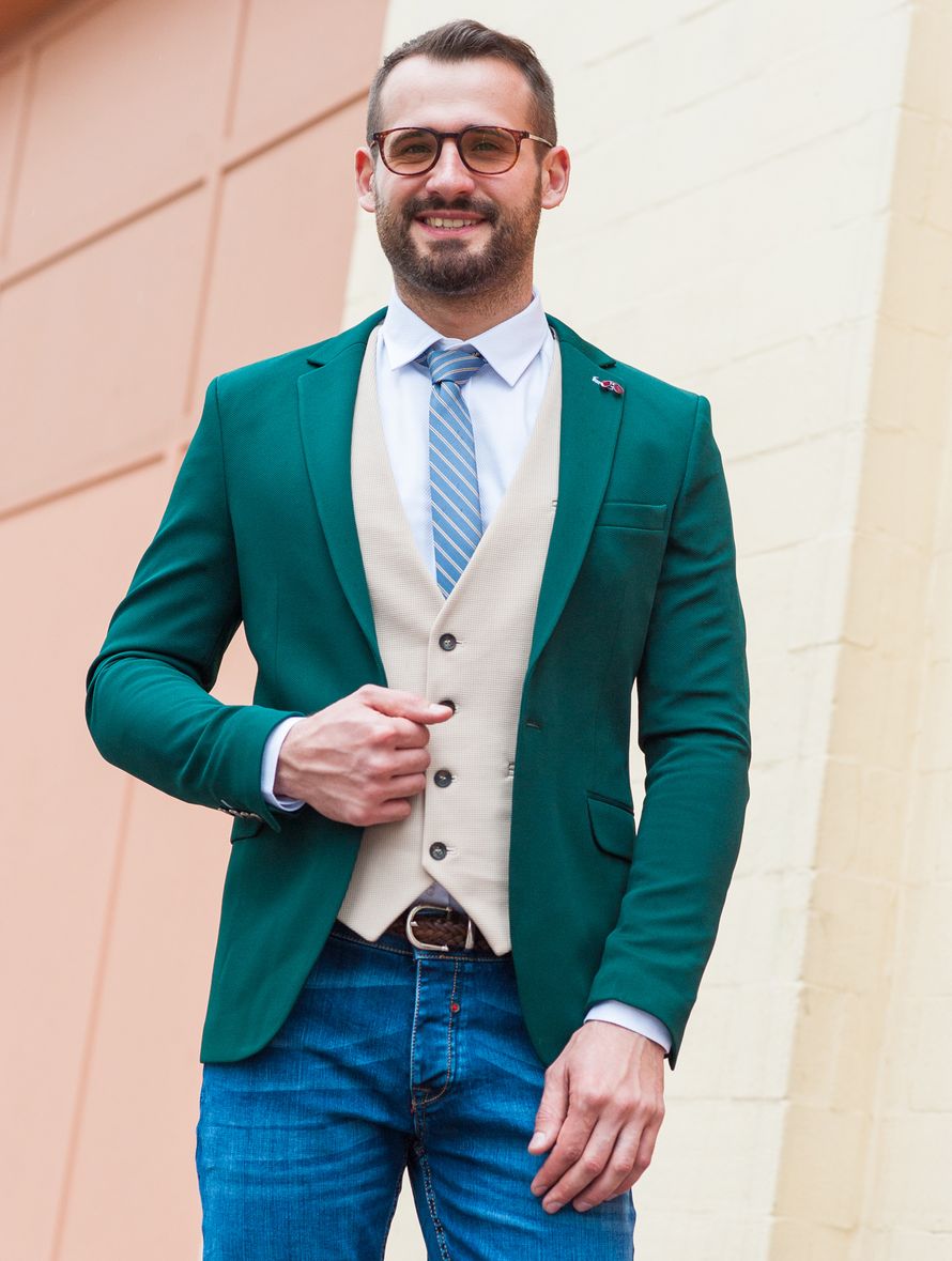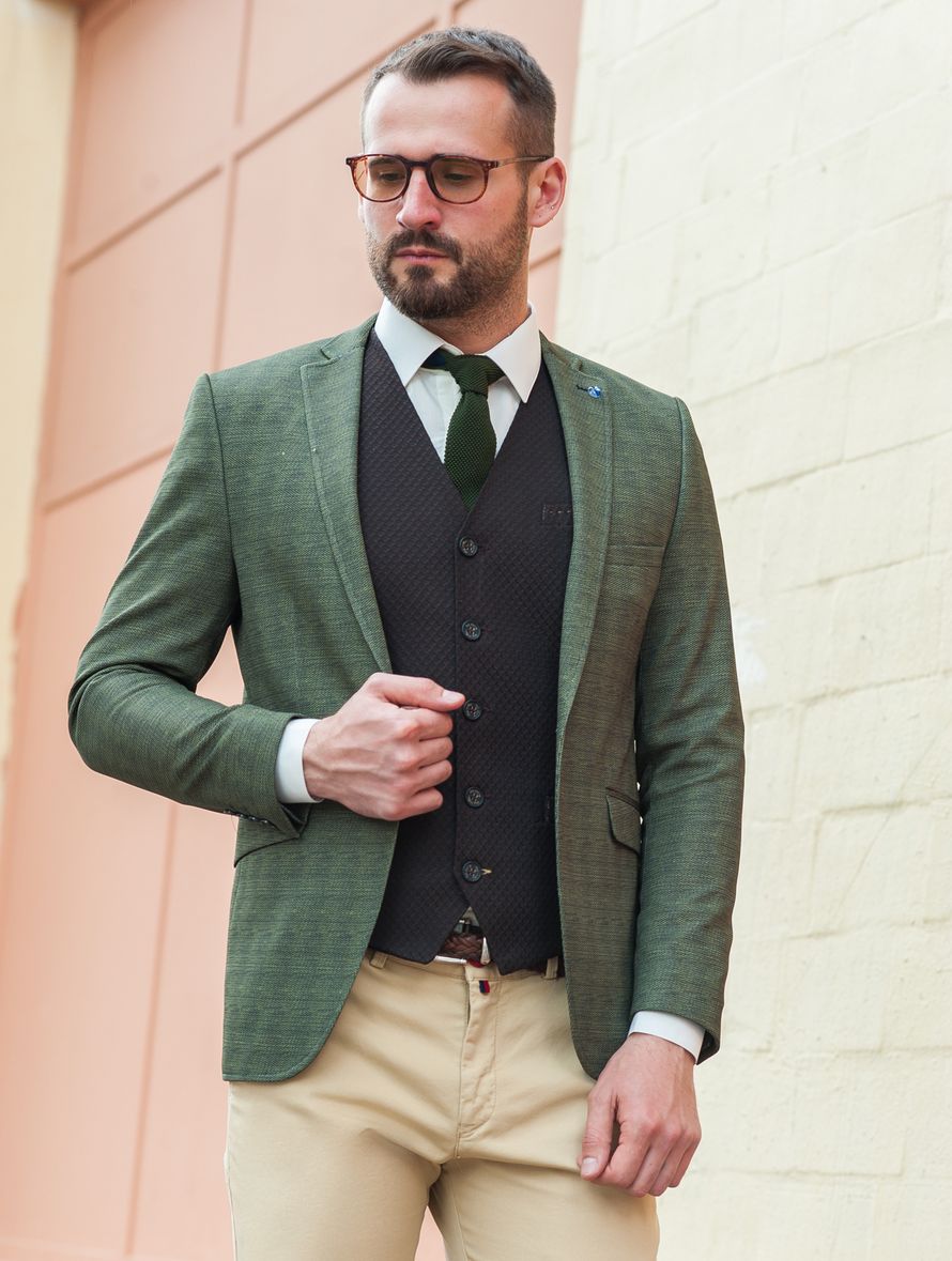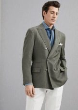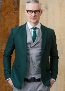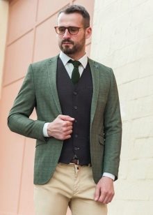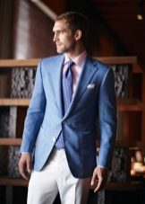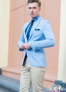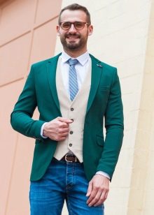 Questa stagione, gli stilisti hanno prestato attenzione a colore verde, anche se nel guardaroba degli uomini è ancora raro vederlo. Ma se scegli la giusta tonalità di verde, puoi creare un look elegante con cose in rosa, beige e blu. Per quanto riguarda la tavolozza chiara, il tono migliore, secondo i designer, è blu. Una giacca di questo colore si adatta a molti uomini, sembra elegante ed elegante e ti consente di creare un set lussuoso.