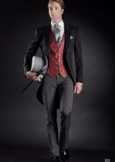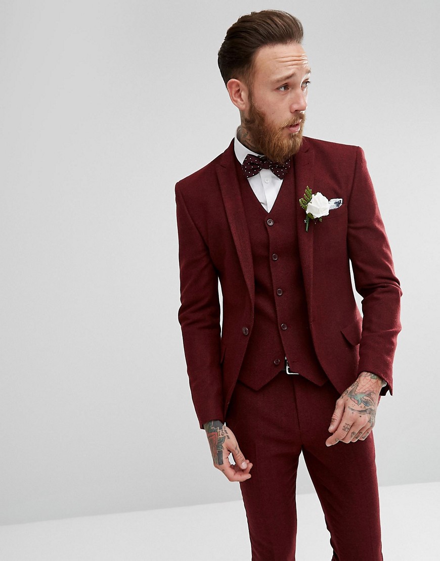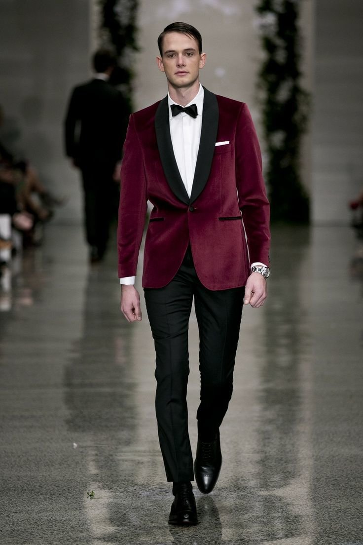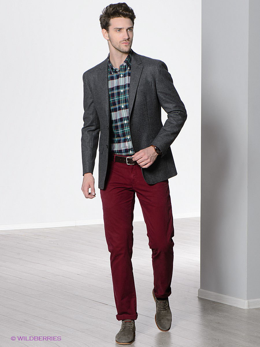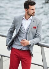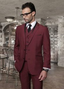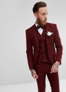 Una delle scoperte della stagione è stata una sfumatura di vino rosso. Oggi è considerato una delle tendenze, tali vestiti sono offerti per gli uomini che preferiscono immagini luminose. Tuttavia, in questo caso, è necessario selezionare correttamente l'arco, prestando particolare attenzione agli accessori.