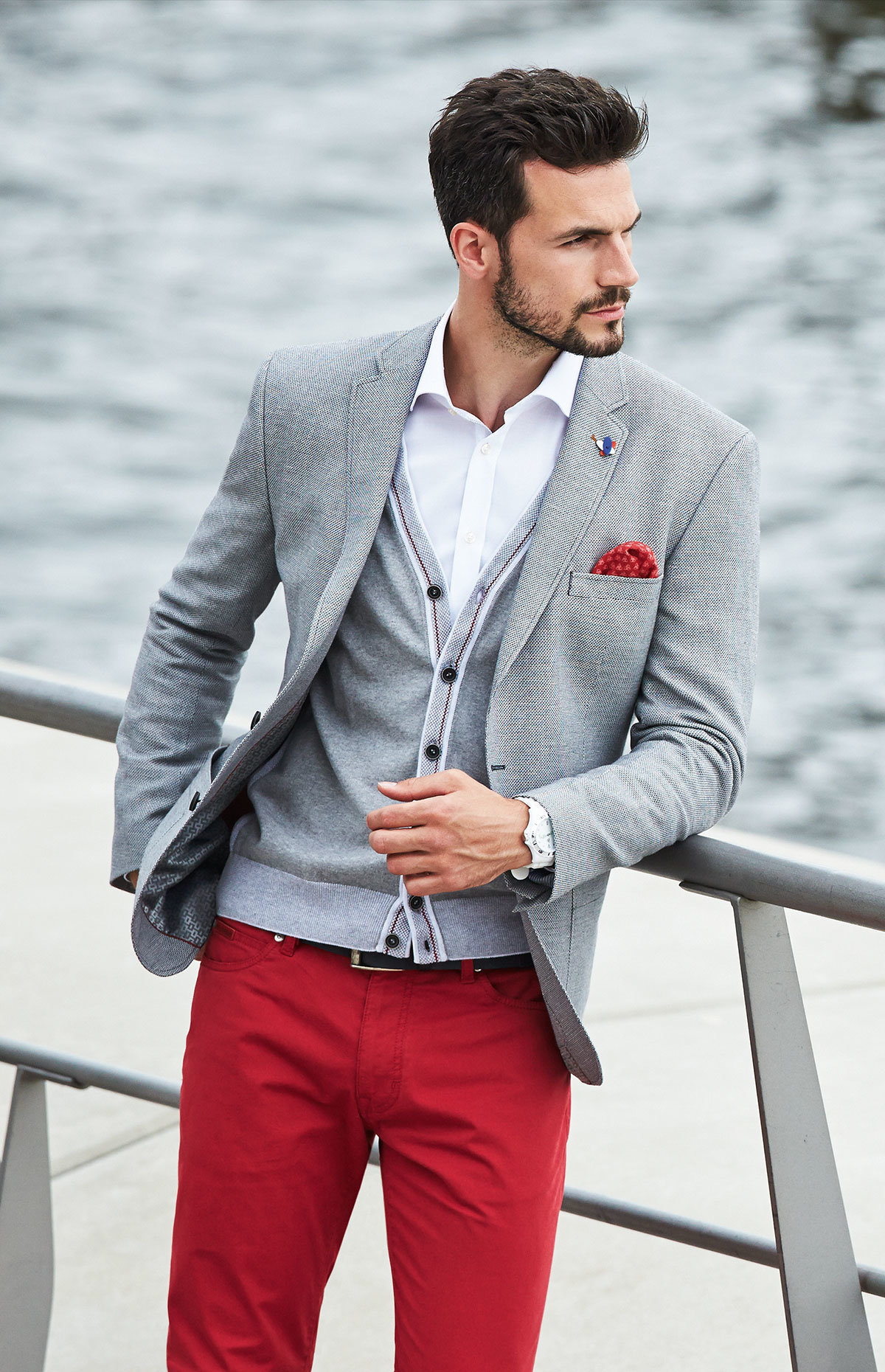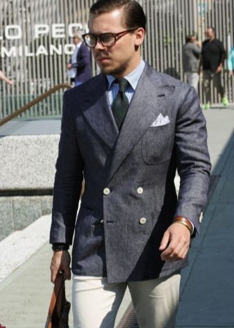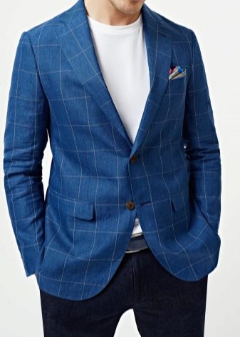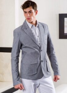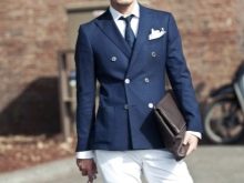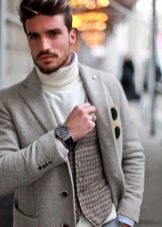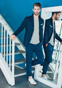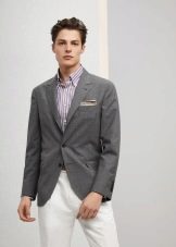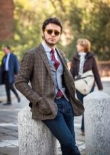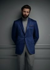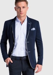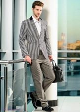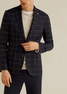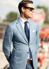 Ha tasche a toppa, revers non larghi, può essere liscio o a quadri. Una giacca sportiva può far risaltare un uomo dalla massa, ma il prodotto deve essere scelto accuratamente - non dovrebbe pendere dalla figura.