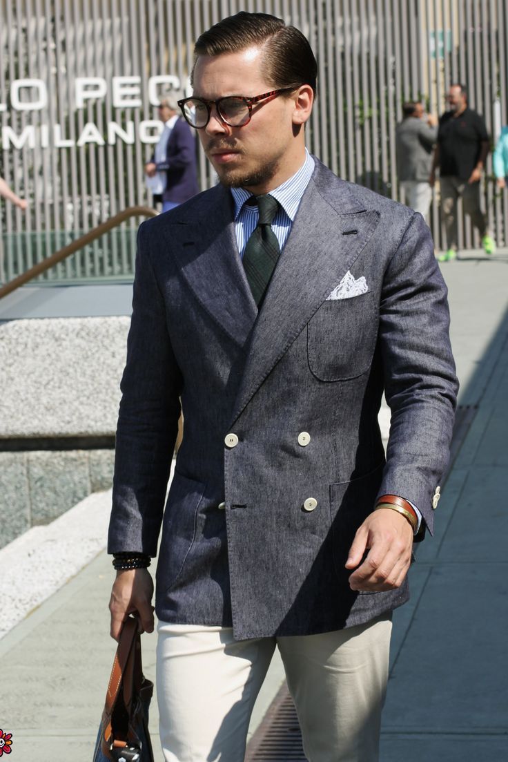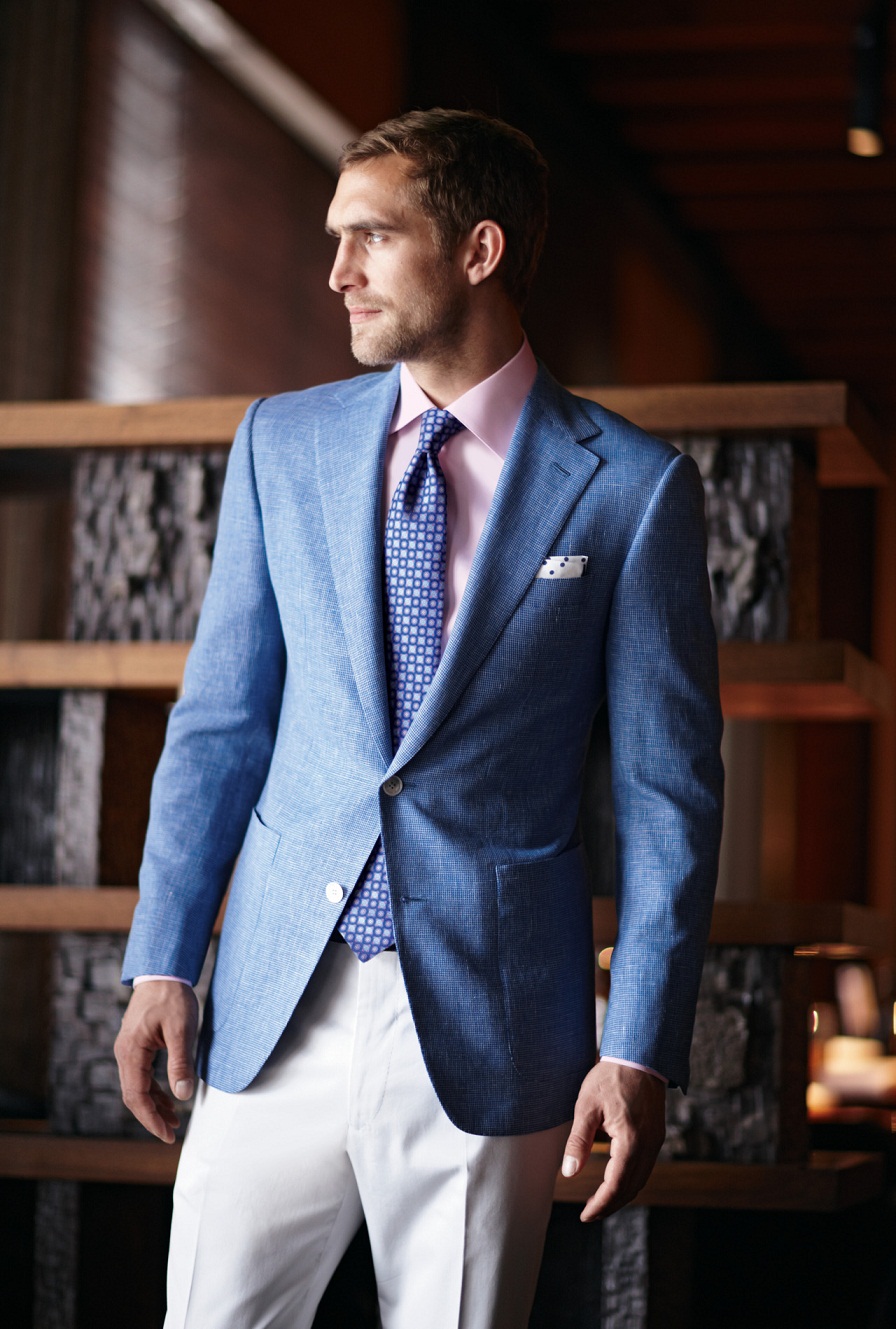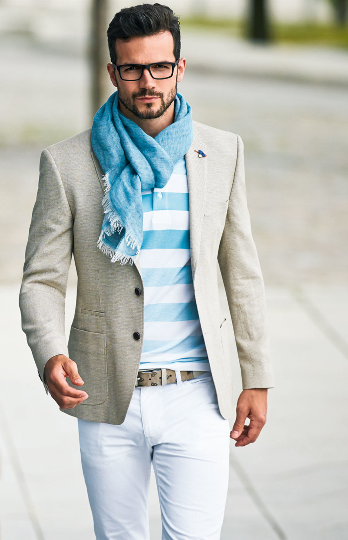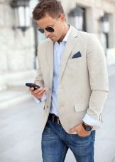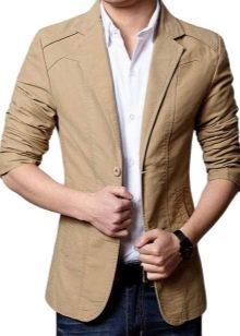 Nel guardaroba di un uomo si trova più spesso una giacca blu scuro o grigia. Lo comprano perché è più versatile di altri analoghi in combinazione di colori. Tuttavia, insieme a questo, sono di moda altre sfumature della tavolozza dei colori. Per esempio, le giacche beige sono reali. Stanno bene con pantaloncini, jeans e magliette.