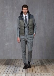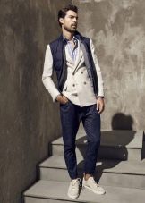 I pantaloni sono selezionati in modo tale che il loro motivo sia in armonia con i colori della giacca. Anche i jeans con polsini sono appropriati qui, così come le scarpe da ginnastica, che oggi sembrano già essere il segno distintivo dello stile casual di tutti i giorni. Un'opzione commerciale può essere creata sostituendo le scarpe da ginnastica con le scarpe stringate. Inoltre, un look di successo può essere integrato con borg, stivali o persino stivali di gomma.